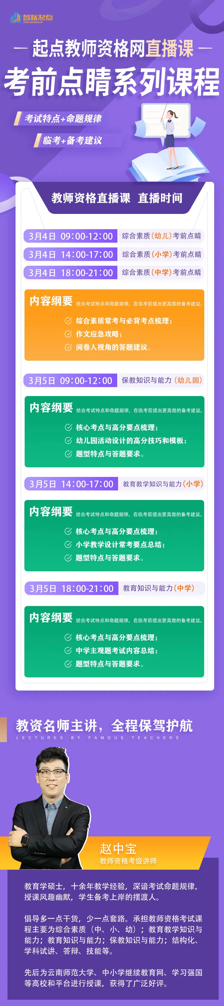 3月起点教师资格网 考前点睛系列课程 直播课即将开播!